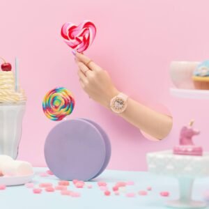 Satisfy your sweet tooth with this candy-colored watch featuring a matte finish and translucent bezel. With shock resistance and 100-meter water resistance, it combines playful design with everyday practicality.