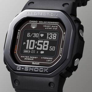 Get ready to elevate your fitness game with the DW-H5600 from G-SHOCK’s rugged G-SQUAD line. This multi-sport watch is equipped with advanced features for tracking workouts, including an optical sensor for heart rate monitoring and an accelerometer for step counting. Access the Polarâ„¢ smartwatch library for workout analysis, post-sleep recovery tracking, and breathing exercises, along with an oximeter for measuring blood oxygen levels. With a high-definition Memory in Pixel (MIP) LCD, you’ll enjoy easy readability during any activity. Designed with sustainability in mind, the bezel and band are crafted from bio-based resin, which reduces environmental impact and supports a circular economy. Plus, you can charge it via USB or solar power, ensuring you’re always prepared to push your limits.